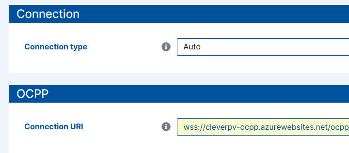 - Trage die OCPP-URL, die dir in deiner App angezeigt wird, im Feld "Connection URI" ein.