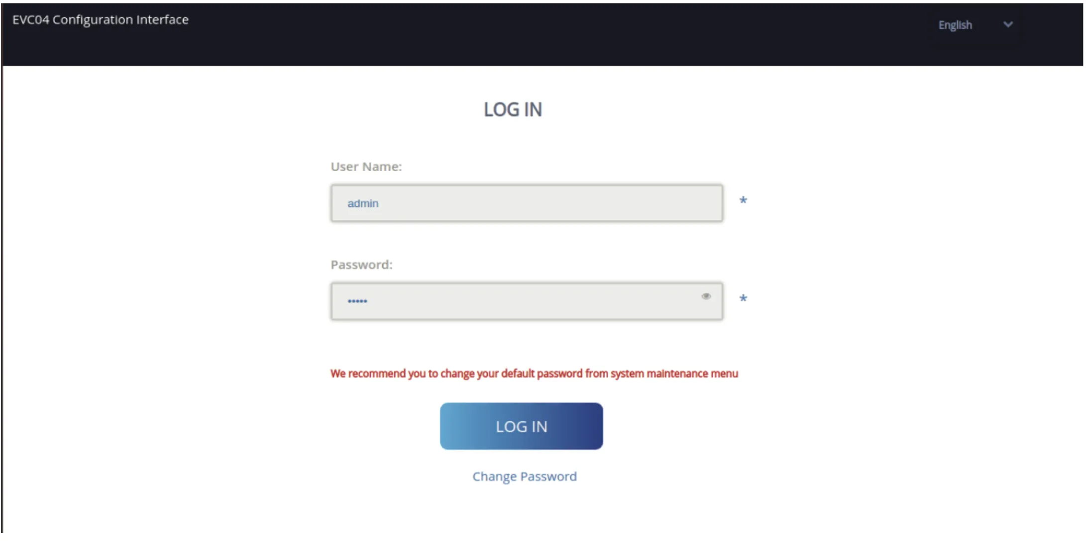 - User name: admin
